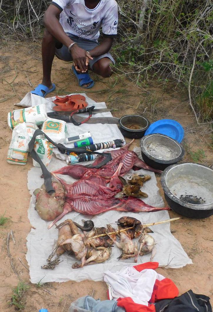 Two poachers were arrested by the team with fresh bushmeat and a motorbike