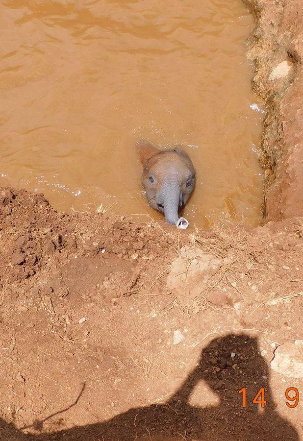 The team helped rescue another elephant calf from a muddy well. Luckily this calf's family weren't too far away and the calf was reunited with them