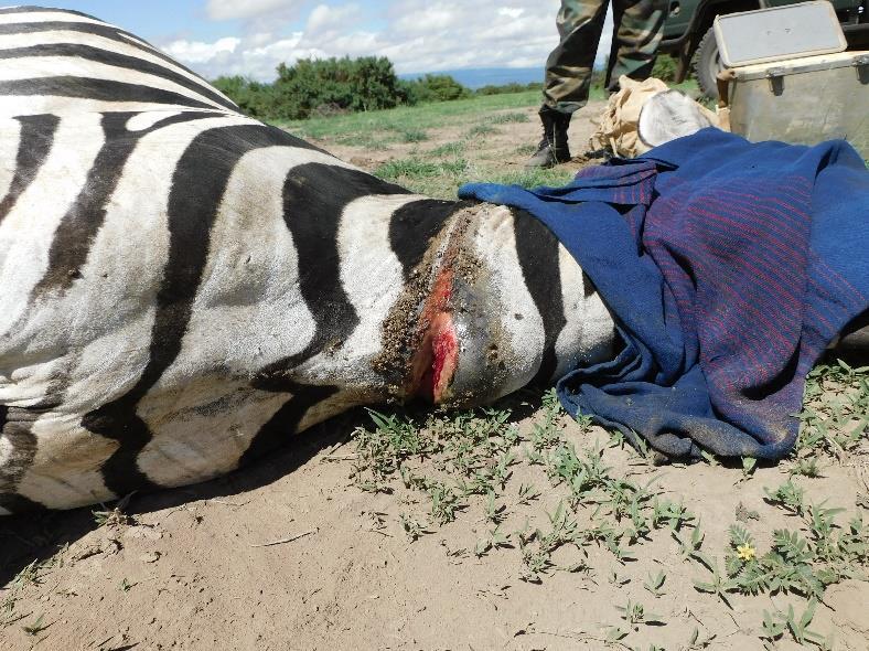 KWS rangers reported a common zebra stallion with a snare around its neck. The zebra was seen near the No. 2 area within the park. The Amboseli Mobile Veterinary Unit located the animal with assistance from the KWS rangers and a scientist from the Wildlife Research and Training Institute (WRTI).