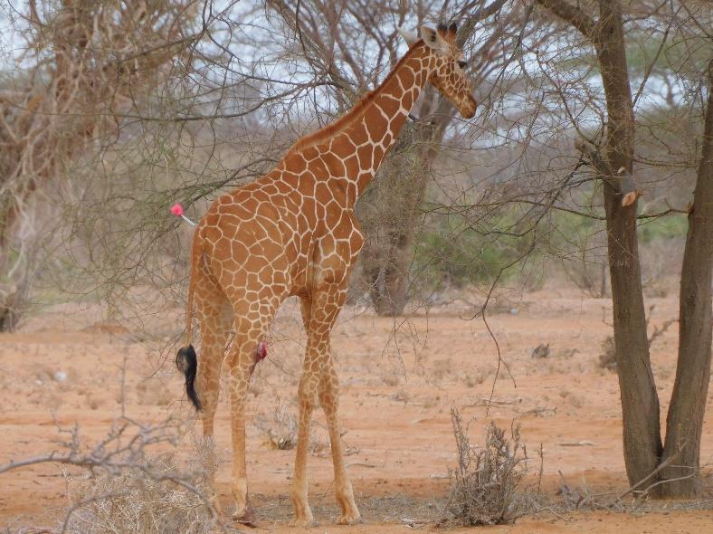 The KWS Deputy Warden Garissa Station reported a snared adult giraffe bull and an injured juvenile male giraffe.