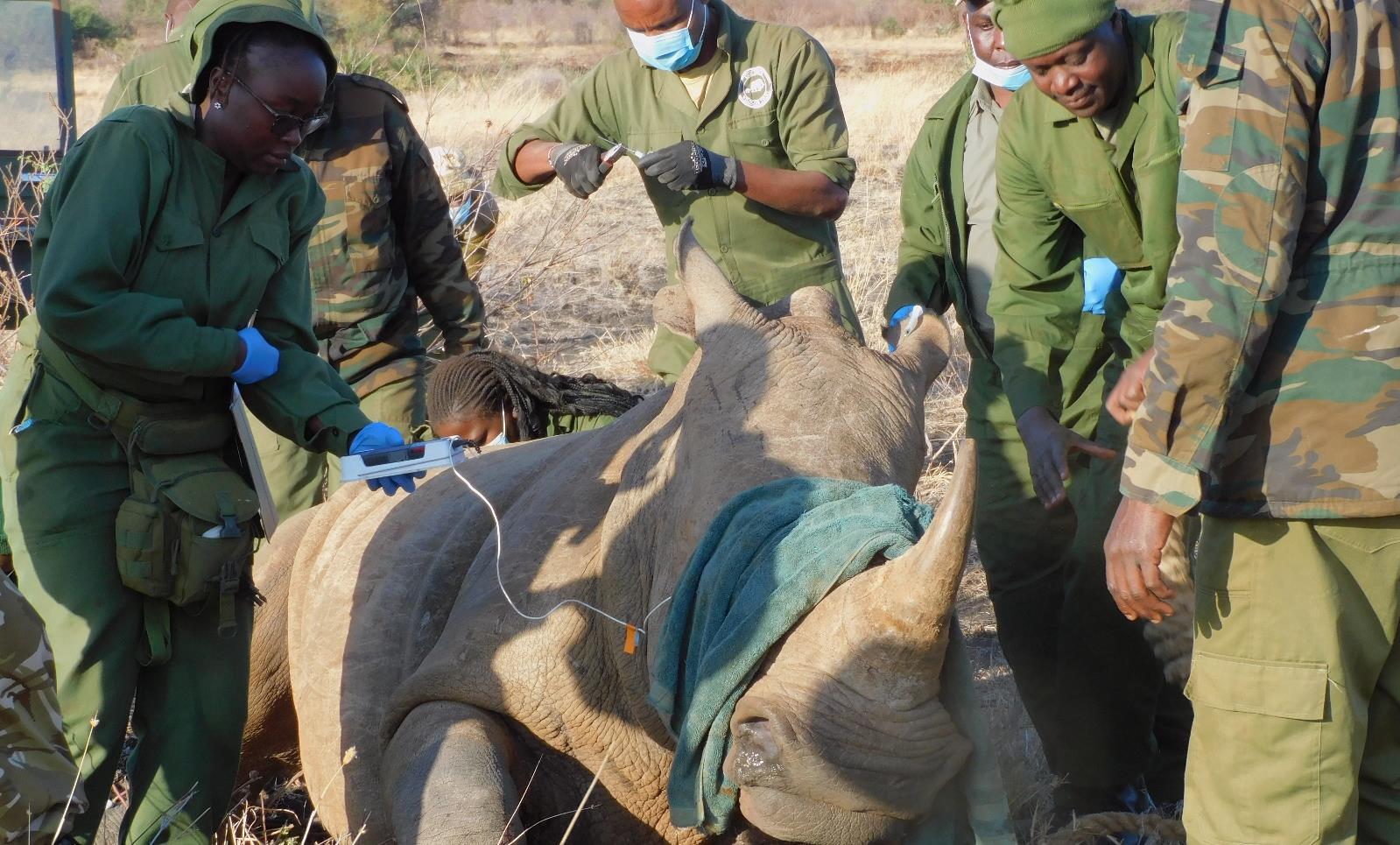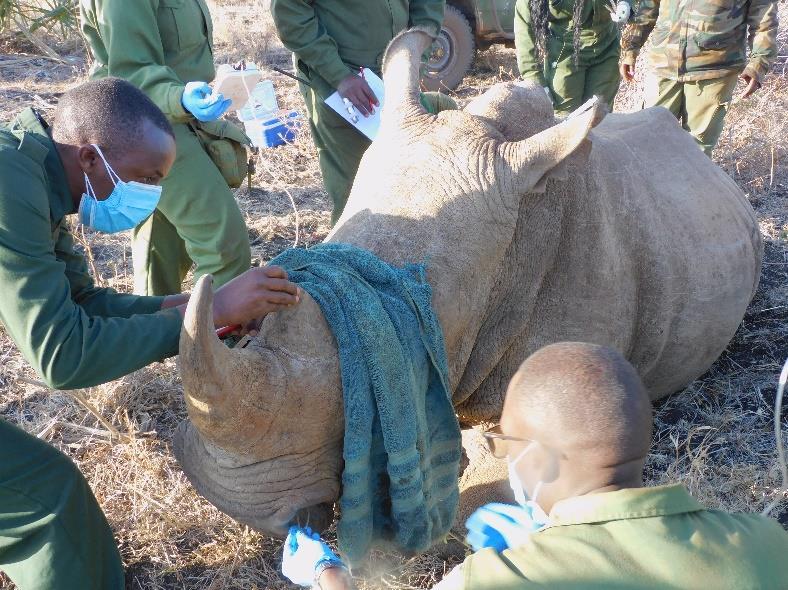 While on a routine monitoring patrol in the Meru rhino sanctuary, the Meru Mobile Veterinary Unit identified an adult white rhino bull with a filariasis-like lesion to the left rump. The rhino was treated in collaboration with the Mount Kenya Mobile Veterinary Unit.