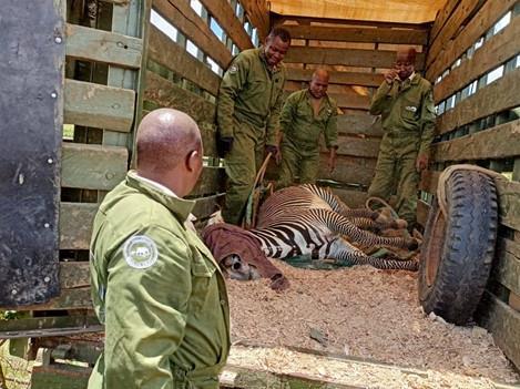 The zebra was then translocated to Meru National Park, numerous stops were made along the way to check on it