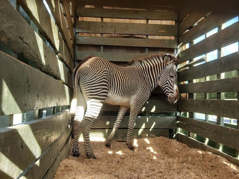 It was blindfolded to prevent stimulation by light then 3,000mg Amoxicillin, 20 ml Multivitamin, and 80 mg Ivermectin were administered before the animal was loaded into a translocation crate. Anaesthesia was reversed with 150mg Naltrexone administered intravenously at 1307hrs. The zebra was up after 2 minutes.