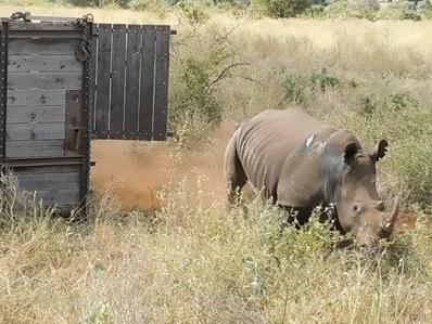 The rhino was released into the larger conservancy area at 14 44 hours, where she walked away from the crate quietly..