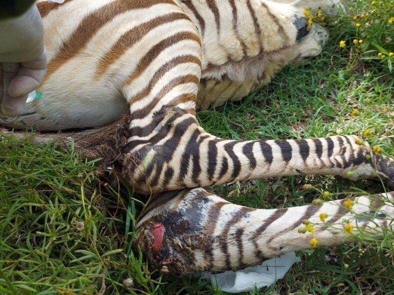 Male common zebra foal with injuries on it hindlimbs Successfully treated