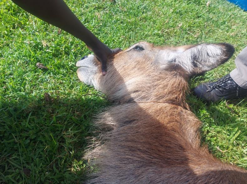 Mt. Elgon N.P. Snared Adult female waterbuck (No. 4) with a wire snare around its neck Successfully treated