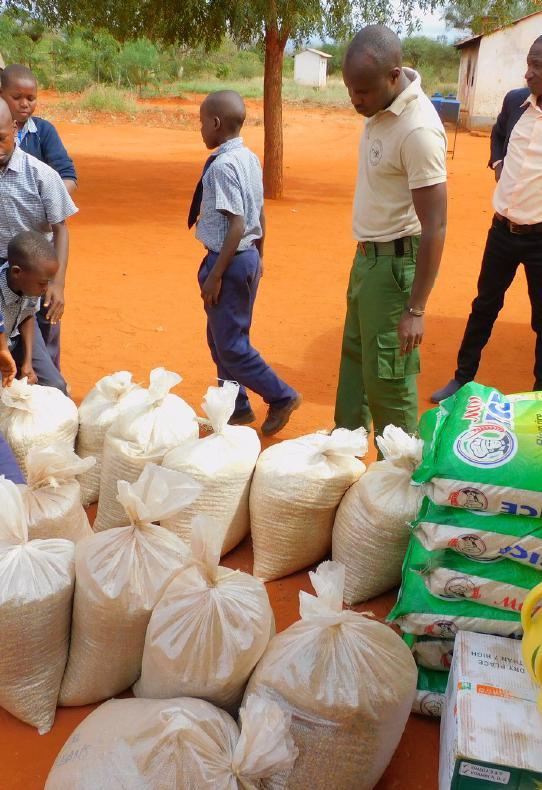 The Sheldrick Wildlife Trust continues to support marginalised communities and schools bordering Tsavo National Park Our daily school lunch program, which was established in 2021, donates supplies of rice, maize, beans and oil to 8 local schools every month. During this reporting period food was distributed in May and June as April in Kenya is annual school holidays
