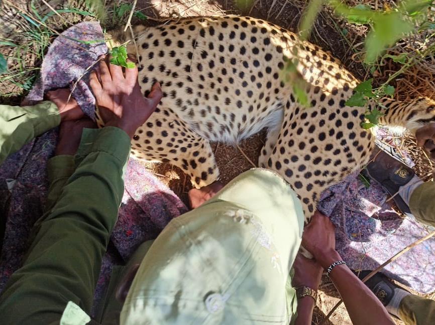 The leopard was then loaded for transportation to the Nairobi Animal Orphanage. It has a good prognosis.