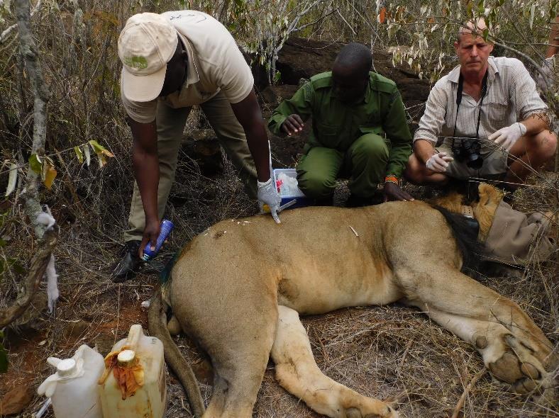 At the request of Kenya Wildlife Service (KWS), the Mt Kenya Veterinary Unit fitted a radio collar on an adult lion in Mpala Wildlife Conservancy to aid in close monitoring of the resident pride of 10 lions and deter them from frequent livestock predation in the neighbouring community areas.