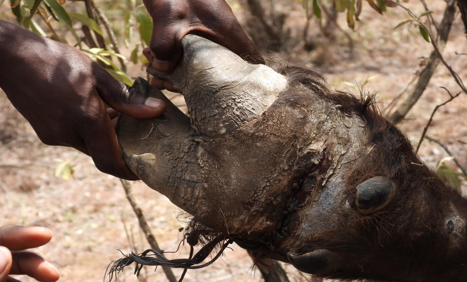The rhino carcass had bite wounds on the neck, head and tail. She had lost part of the tail.