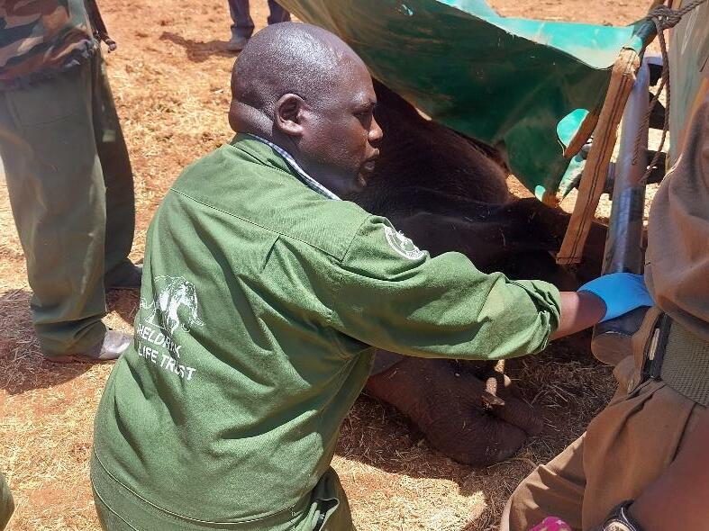 Community members woke up to 2 elephants struggling to free themselves from a muddy dam in the area Local KWS officers and Sheldrick Wildlife Trust were notified 3 days later after it became apparent that the elephant cow and her young calf were not going to be able to free themselves without assistance.