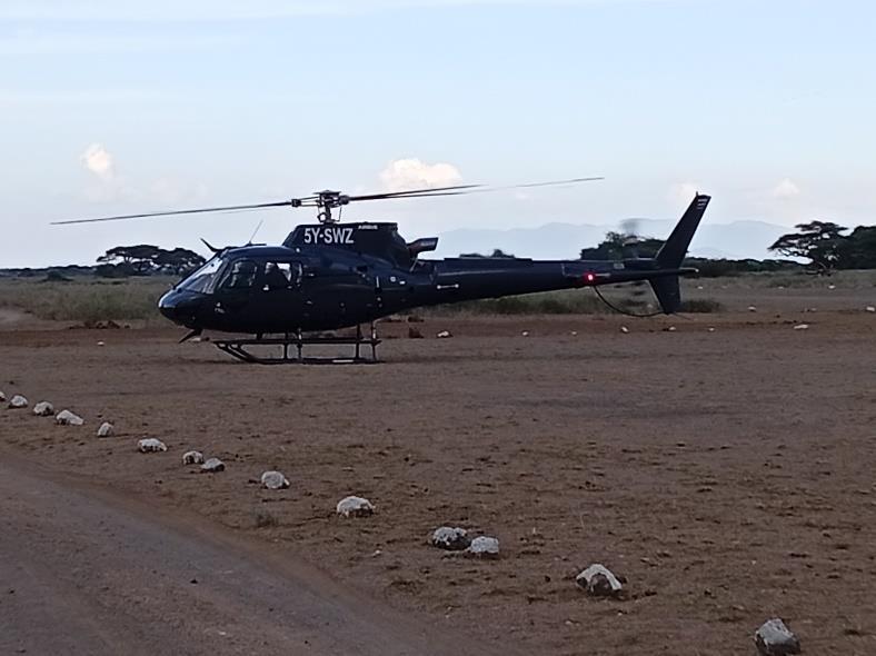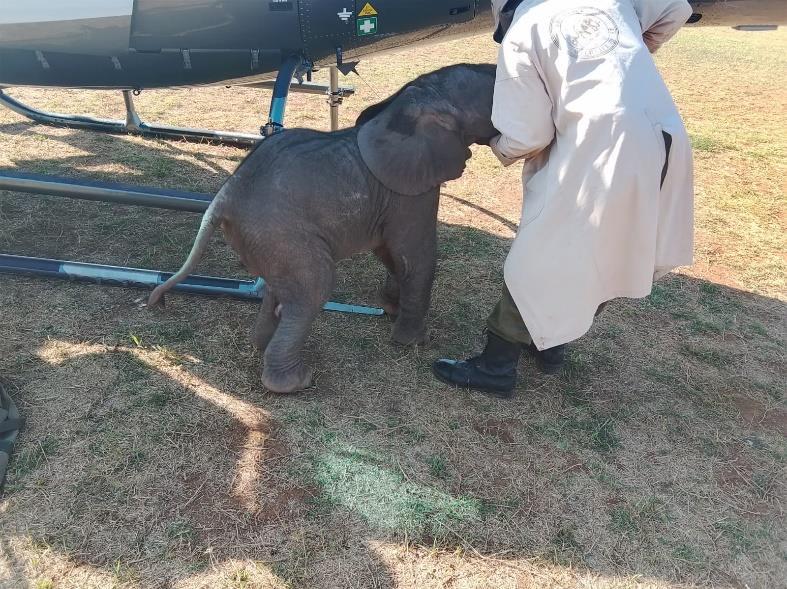 The calf was maintained on water and warmth in a room away from the night wind in Amboseli National Park. The calf was picked early in the morning using an SWT helicopter and moved to Kaluku for further care