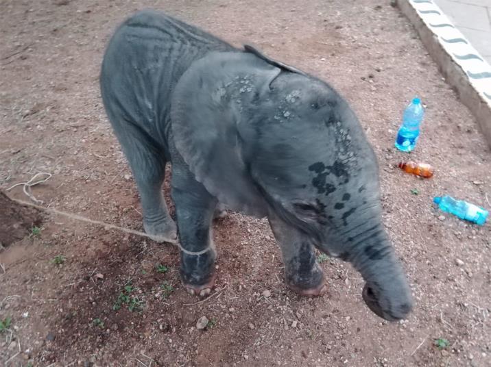 The calf was maintained on intravenous fluids and warmth immediately after capture in Amboseli National Park. The calf had an extensive wound at the back. Topical antibiotic was applied on the wound to cover for local antibiotic.