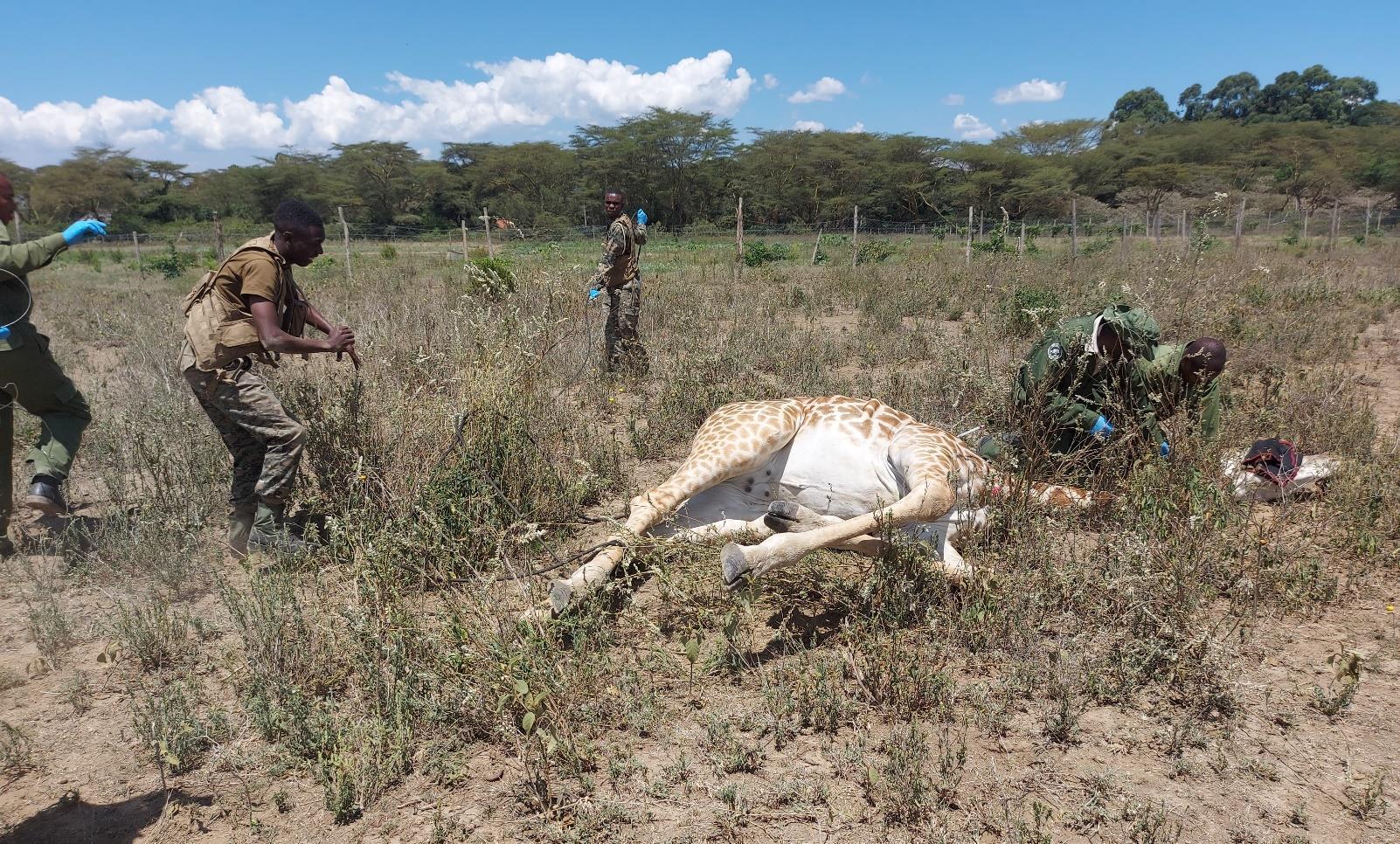 The giraffe was darted using 14mg Etorphine Hcl combined with 80mg Azaperone.