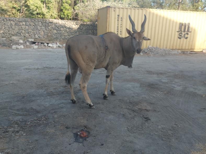 This eland was reported by the Haller Park team to have an arrow lodged in his back.