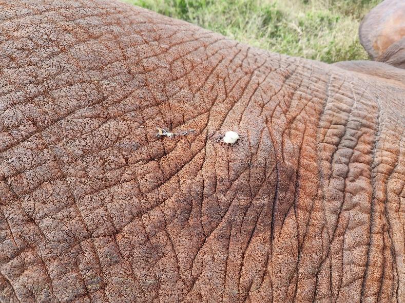 This injured elephant was spotted being wounded on the right flank in Dakota area by the SWT pilot. TMVU was notified and responded immediately.