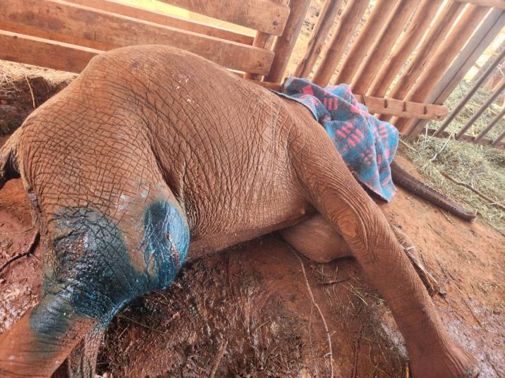This elephant was spotted by the Taita sisal management with a wound on his left rump.