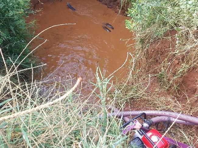 19-Apr 24 Elephant Kuranze Ranch HWC Young adult elephant bull stuck in a pit full of water.
