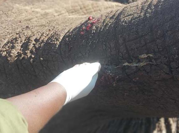 This injured adult elephant bull was spotted by a SWT pilot on routine park patrol