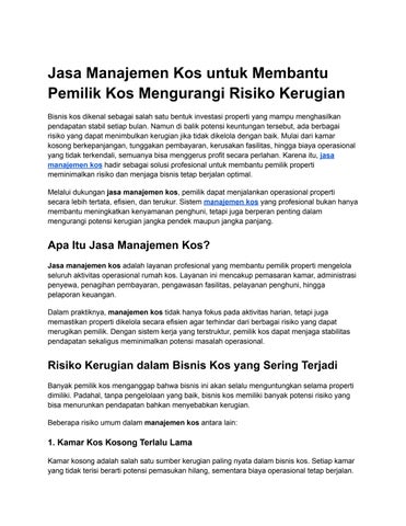 Jasa Manajemen Kos untuk Membantu Pemilik Kos Mengurangi Risiko Kerugian
