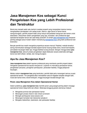 Jasa Manajemen Kos sebagai Kunci Pengelolaan Kos yang Lebih Profesional dan Terstruktur