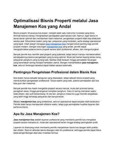 Optimalisasi Bisnis Properti melalui Jasa Manajemen Kos yang Andal