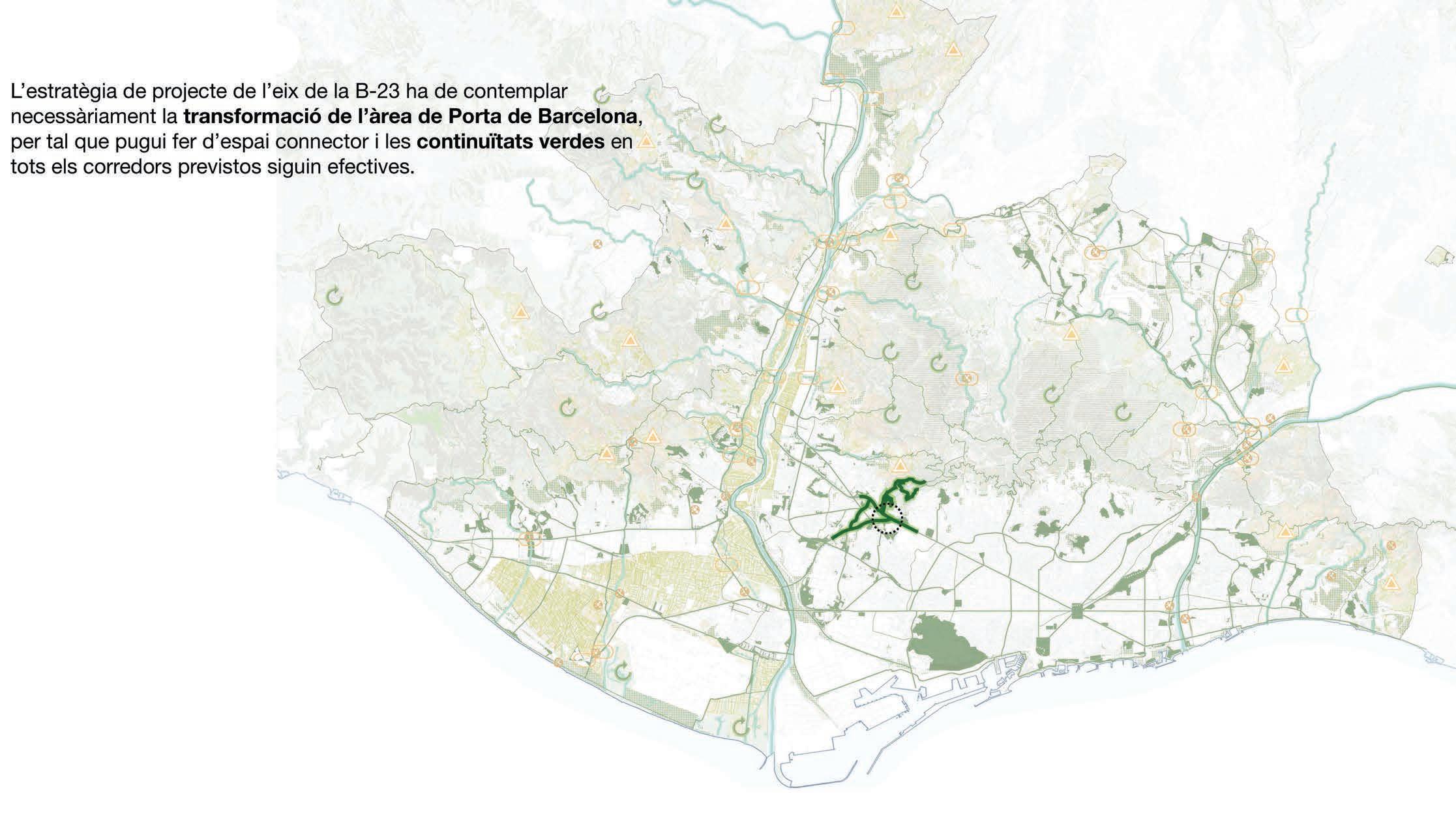 així doncs, la transformació de la b23 en avinguda metropolitana, es sumarà a la futura xarxa de corredors, connectors, avingudes, carrers i camins metropolitans, que gràcies a la seva combinació i interacció amb el sistema d’espais lliures urbans i naturals, han d’esdevenir una veritable matriu activa multifuncional, que millori la connectivitat de la metròpoli i generi noves ordenacions que resolguin la relació amb els teixits urbans existents i aprofi tin el potencial dels nous eixos que confi guraran la metròpoli del segle xxi.