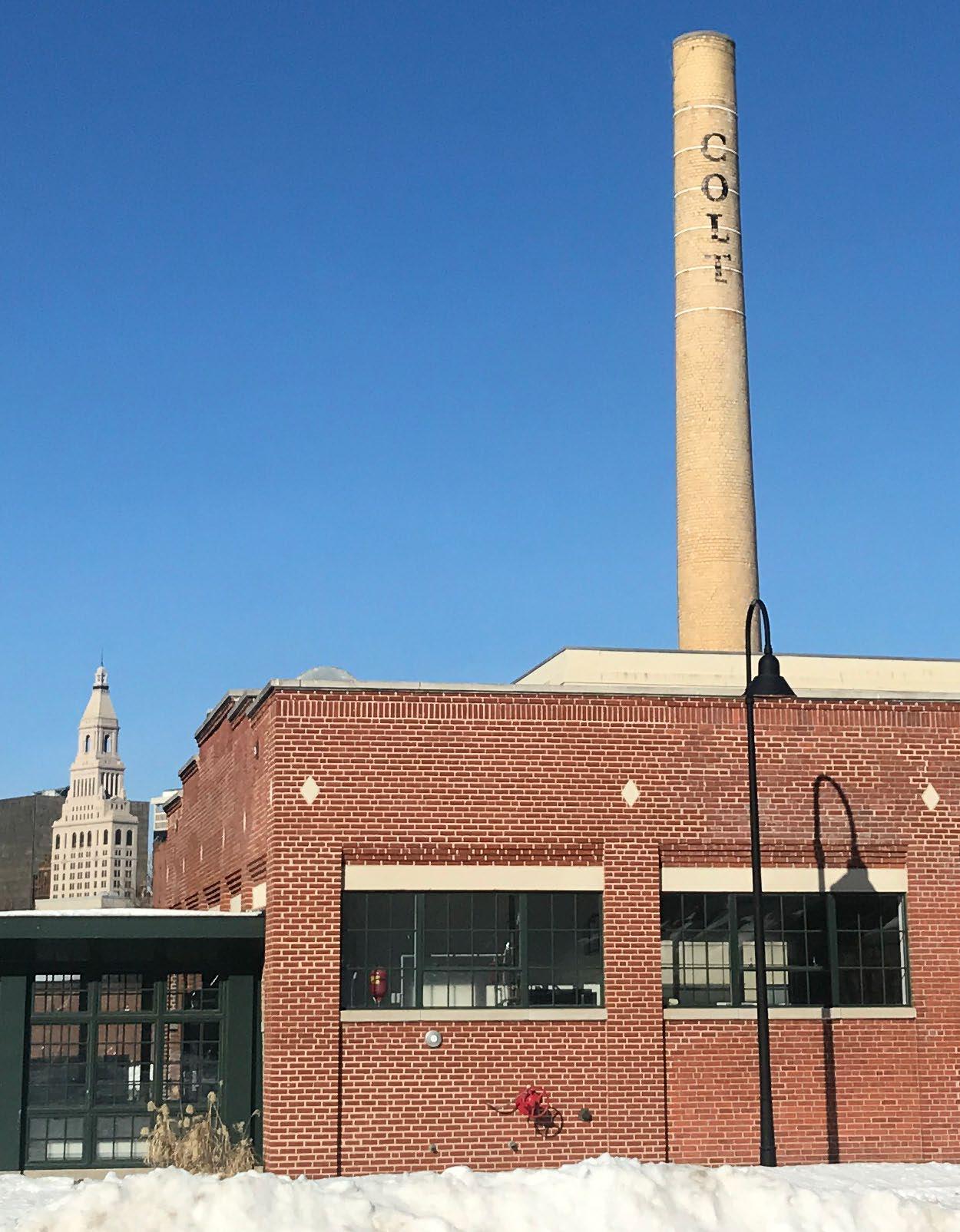 At the center of this historic site is the Colt Firearms Complex. The manufacturing complex was built between 1855 and 1942 with the intention of providing workers with every need, from shelter to spirituality to recreation.