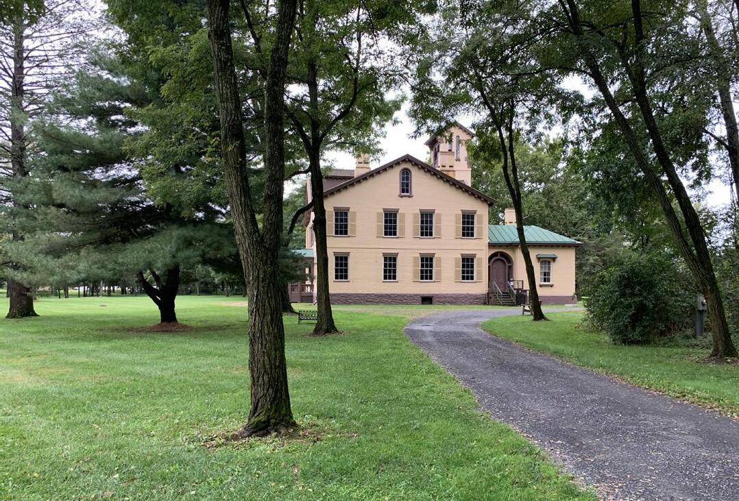 Lindenwald, the land and home of Van Buren following his defeat for a second term (1841-1862) is the centerpiece of this historic site. Lindenwald, a Georgian-style mansion, is the park’s main cultural resource and attraction. In addition to the mansion, a semi-circular driveway lined with locust trees, Old Post Road, the South Gatehouse, North Gatehouse foundation, the well cap, the carriage path and the farm cottage contribute to the historical character of the property. A restored portion of the circular front garden near the front entrance to the mansion and remnants of Van Buren’s fish ponds are historic features that remain.