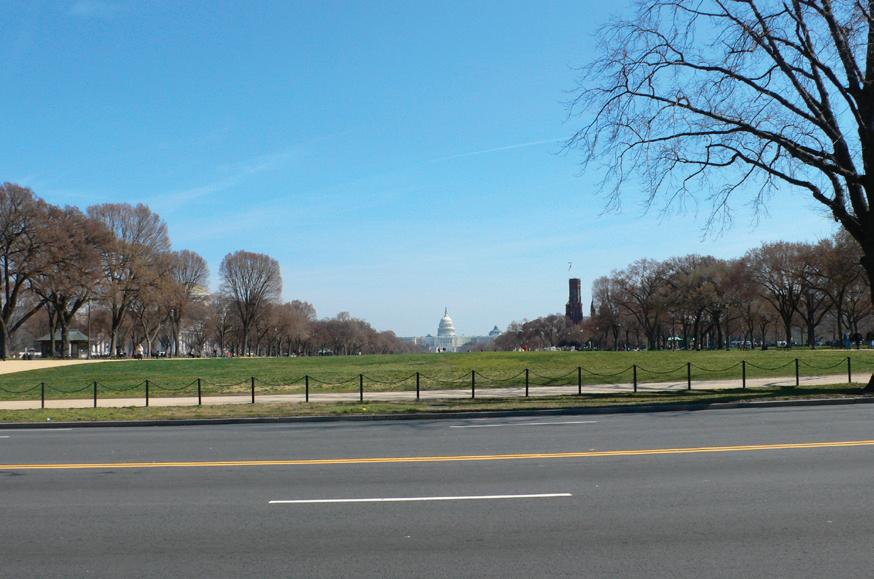 The National Mall is intersected by two axes defining the Monumental Core of Washington, and its principal landmarks. A north-south axis extends from the White House to the Jefferson Memorial, and an eastwest axis extends from the Capitol to the Lincoln Memorial. The Washington Monument is located at the intersection of the cross axes. The NMAAHC site is located at the northeast corner of the Washington Monument Grounds. It is fitting for the NMAAHC site to be located at the center of America’s symbolic landscape to reinforce the centrality of the African American experience to American history.