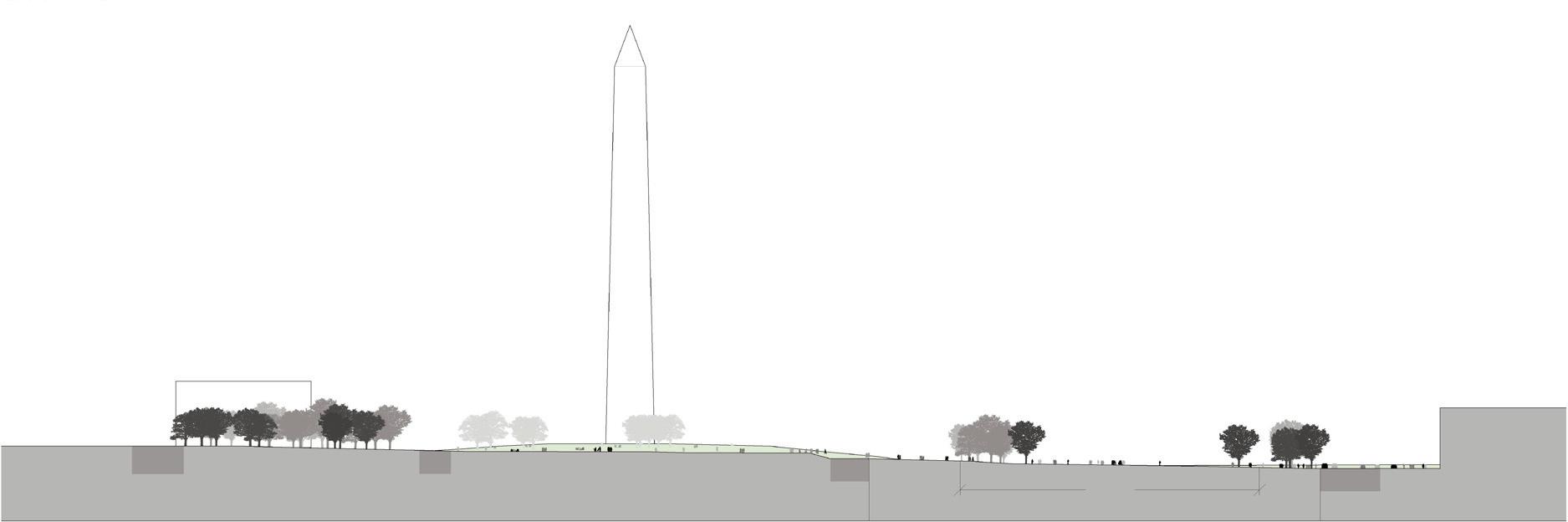 The physical and visual massing of the museum should be both mitigated and exploited through landscape design, providing a significant architectural and landscape architectural contribution to the larger site of the National Mall and Washington Monument Grounds.