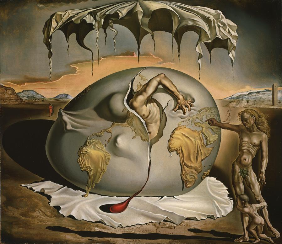 3. (Left image) “Geopoliticus” child watching the birth of the new man, Salvador Dalí, 1943. Oil on canvas, 44.5 x 52 cm. The Dalí Museum, St. Petersburg (Florida).