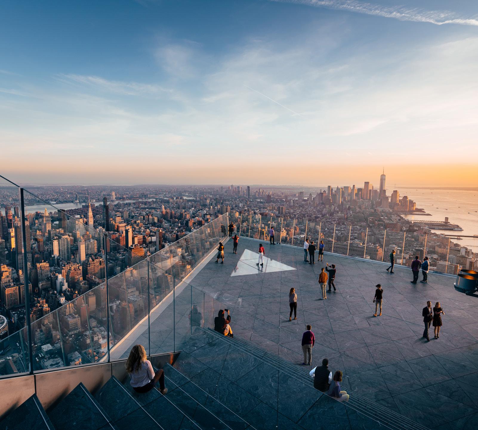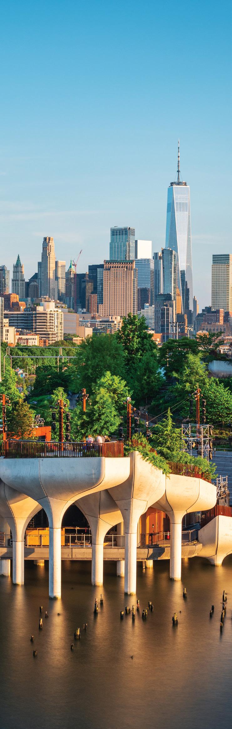 New York is a vertical city and there’s never been a better time to experience it, with multiple world-class observatories opening up the city’s skies. For a downtown take on altitude, look to One World Observatory. It’s the tallest building in the hemisphere, offering 360° immersions in the landmarks of downtown. From a climatecontrolled perch you can enjoy unique perspectives on New York Harbor, the Statue of Liberty, historic bridges, and even out to New Jersey. See the Empire State Building for yourself and you’ll know immediately why the skyscraper is one of the Seven Wonders of the Modern World. The 86th floor is home to the Observation Deck, open to the air with views that go on for miles. The Western Hemisphere’s highest outdoor observation deck, Edge, stands atop the city’s newest neighborhood, Hudson Yards. Step out onto the triangular deck (shown here) and you’ll be 100 floors above the ground with miles of visibility in every direction. Edge will also thrill you with its glass floor, providing views of the High Line below your feet. Across town near Grand Central, SUMMIT One Vanderbilt takes the concept of an “observation deck” to new heights through three floors of multi-sensory