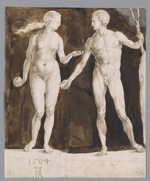 4. Adam and Eve, engraving, dated on plate 1504. The Morgan Library & Museum, 2006.80 Purchased as the gift of Eugene V. Thaw, S. Parker Gilbert, Rodney B. Berens, Mrs. Oscar de la Renta, Elaine Rosenberg, T. Kimball Brooker, George L. K. Frelinghuysen, and on the Ryskamp Fund, the Edwin H. Herzog Fund, and the Lois and Walter C. Baker Fund, 2006. Photography by Graham S. Haber.