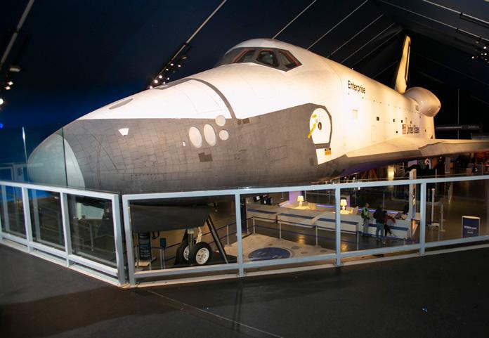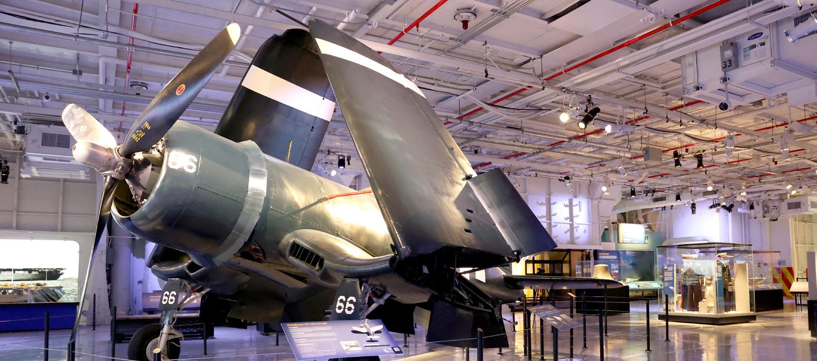 ing time capsule, an immersive experience that takes in maritime history, space exploration, and the evolution of aviation. The flight deck is home to 28 authentic historic aircraft, including the record-breaking supersonic British Airways Concorde. The epic Space Shuttle Pavilion holds Enterprise, which was a massive technological leap forward for NASA and America. New to the museum is a restored World War II FG-1D Corsair, one of the only surviving examples of this aircraft, which played a pivotal role in the Pacific Theater.