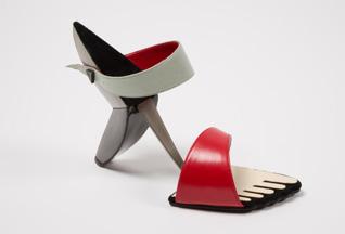 3. (Clockwise from top left.) André Perugia for the Musée Charles Jourdan, leather and metal “Picasso” shoe, 1984 replica of 1953 original, France. Gift of Charles Jourdan.