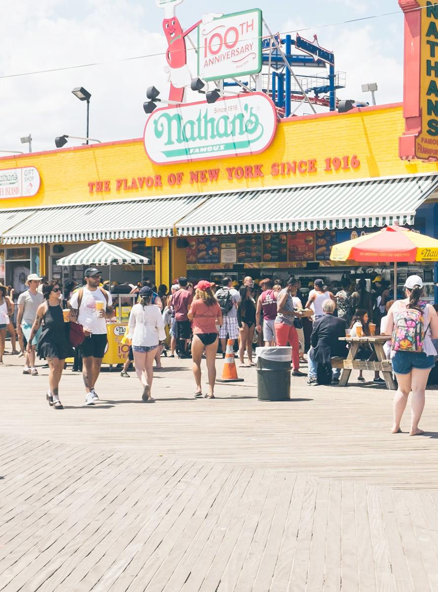 Dozens of foods we love today were born in NYC, from the Rueben to the hot dog—the latter introduced by baker Charles Feltman on the Coney Island boardwalk in 1867.