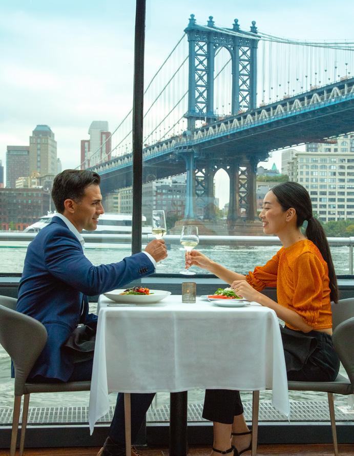 The best way to dine along the skyline is aboard City Cruises. For a refined experience, book a Premier Brunch, Lunch, or Dinner Cruise on the all-glass, European-inspired Bateaux New York and enjoy plated dining, live entertainment, signature cocktails, and the city’s most impressive views.