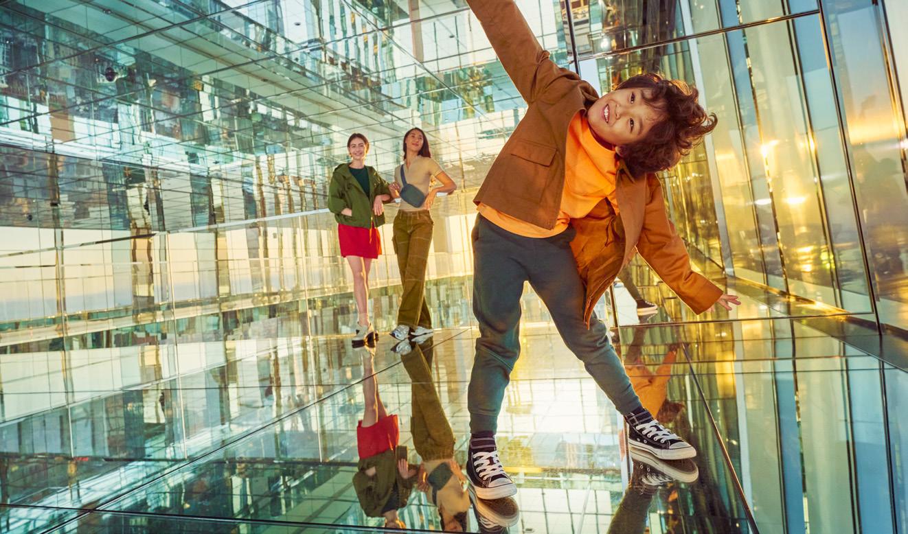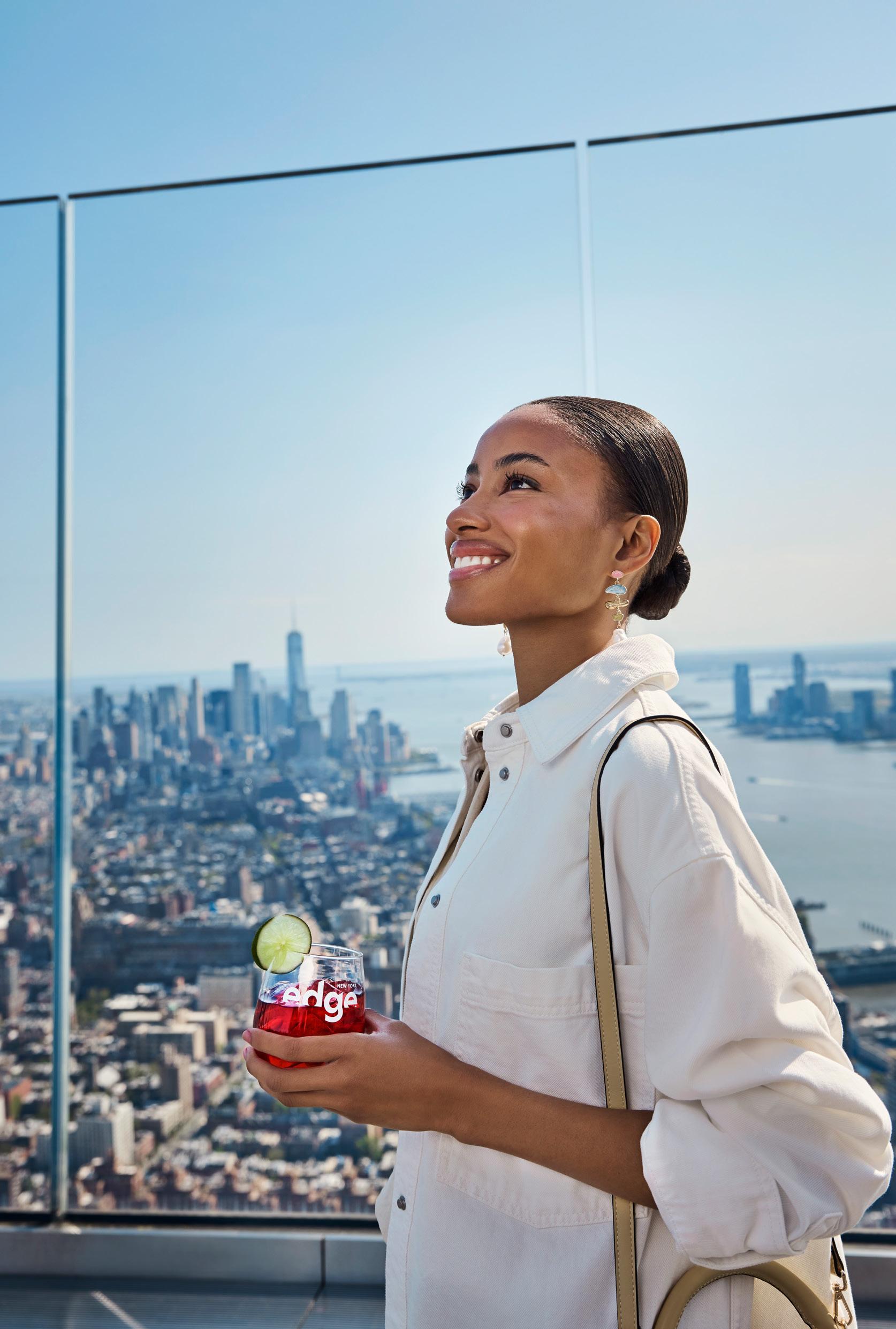 New York is a vertical city and there’s never been a better time to experience it, with multiple world-class observatories opening up the city’s skies. For a downtown take on altitude, look to One World Observatory. It’s the tallest building in the hemisphere, offering 360° immersions in the landmarks of downtown. From a climatecontrolled perch you can enjoy unique perspectives on New York Harbor, the Statue of Liberty, historic bridges, and even out to New Jersey. See the Empire State Building for yourself and you’ll know immediately why the skyscraper is one of the Seven Wonders of the Modern World. The 86th floor is home to the Observation Deck, open to the air with views that go on for miles. The Western Hemisphere’s highest outdoor observation deck, Edge, stands atop the city’s newest neighborhood, Hudson Yards. Step out onto the triangular deck (shown here) and you’ll be 100 floors above the ground with miles of visibility in every direction. Edge will also thrill you with its glass floor, providing views of the High Line below your feet. Across town near Grand Central, SUMMIT One Vanderbilt takes the concept of an “observation deck” to new heights through three floors of multi-sensory