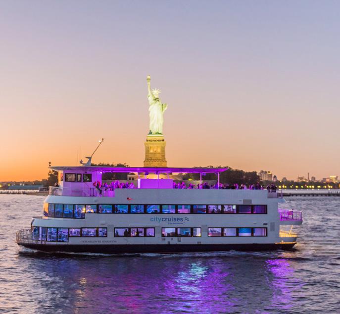 The best way to dine along the skyline is aboard City Cruises. For a refined experience, book a Premier Brunch, Lunch, or Dinner Cruise on the all-glass, Europeaninspired Bateaux New York and enjoy plated dining, live entertainment, signature cocktails, and the city’s most impressive views.