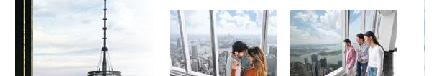 Clockwise from top left: unique photo ops from the outdoor observation deck at Edge; pose in a moment in time at Madame Tussauds New York; unique encounters at downtown immersive experience Mercer Labs.