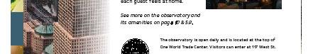 The observatory is open daily and is located at the top of One World Trade Center. Visitors can enter at 117 West St.