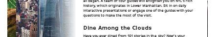 Beyond the view, visitors to the observatory are encouraged to learn something new about New York from the place where it all began. A team of tour guides will enlighten you on NYC’s rich history, which originates in Lower Manhattan. Sit in on daily interactive presentations or engage one of the guides with your questions to make the most of the visit.