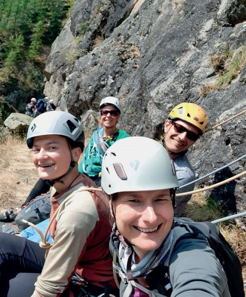 MeterundistinderKategorieB–B/C einzuordnenundwegenderhervorragendenSeilrouteauchfürEinsteigerundKinder/Jugendlichegeeignet. FüreinigewardiesderersteKlettersteigundbeischönstemWetterein beeindruckendesErlebnis.BeiselbstgemachtemKartoffelsalatundMaultaschengingesamAbendgemütlich zumSpielenüber.