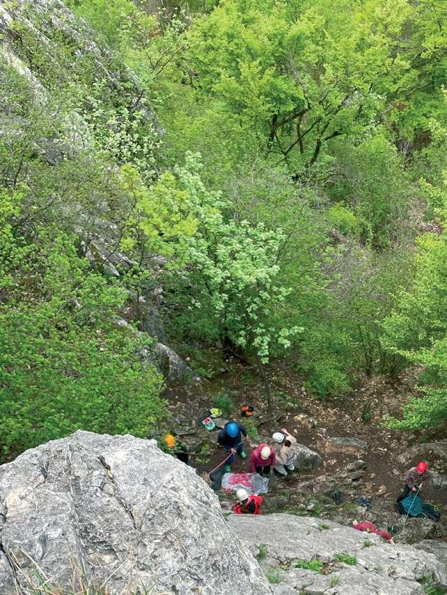 Am13.Maistartetenwirunterdem Motto„VonderHalleandenFels“ RichtungWiesfels.DerdichteNebel, durchdenwirunsaufdieSchwäbischeAlbschlängelten,konnteunsere Vorfreudenichttrüben.Stattbunten Plastikgriffengabesnunalsoechten FelsunterunserenHänden.Zunächst erfordertedasetwasUmgewöhnung, aberdankdergroßartigenBetreuung konntenwirunsStückfürStück–im wahrstenSinnedesWortes–herantasten.ErstganzgemütlichimTopRope,dannalsÜbungsschrittein zweitesSeilmitnehmendalsgutgesicherteVorstiegssimulation.