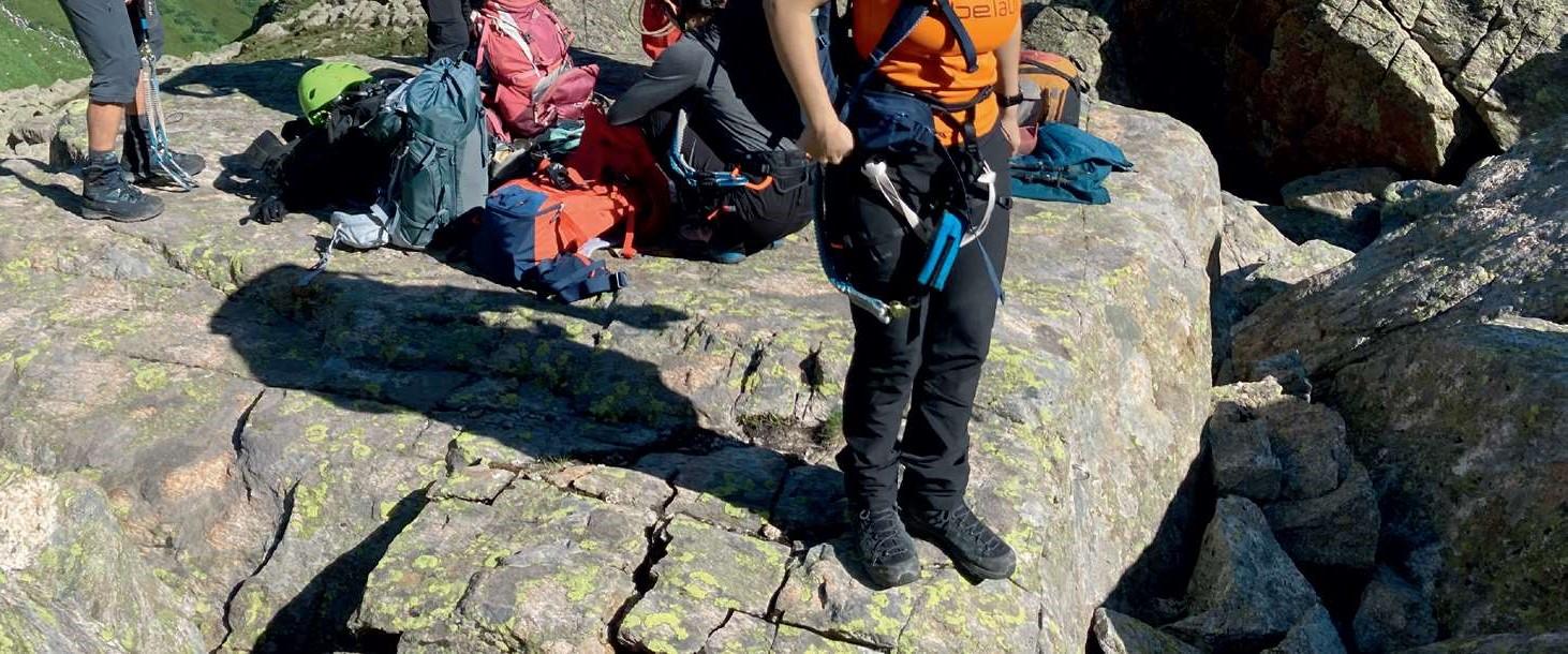 AmnächstenTaggingenwirzum ÜbungsgeländeinderNäheder TübingerHütte.Dorterwartetenuns derKlettersteig„SiebenZwerge“, WändezumToprope-Kletternundein Gelände,umdasAbseilenzuüben. WirdurchklettertendenSteigundanschließendkonntejederdaklettern, worauferLusthatte.Susanneund MatthiasgabenunsTippsundihrWissenanunsweiter.Wirhieltenunsden ganzenTagdortaufundkehrtenerst zumAbendessenzurück.DenAbend ließenwirwiederaufderTerrasse ausklingen.