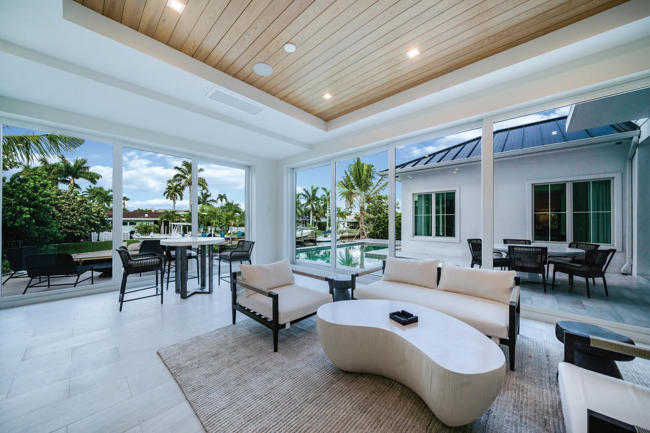 A sun-drenched Florida room, summer kitchen, and heated pool/spa surrounded by a wood deck, complete the picture of this chic-yet-tranquil Naples retreat.