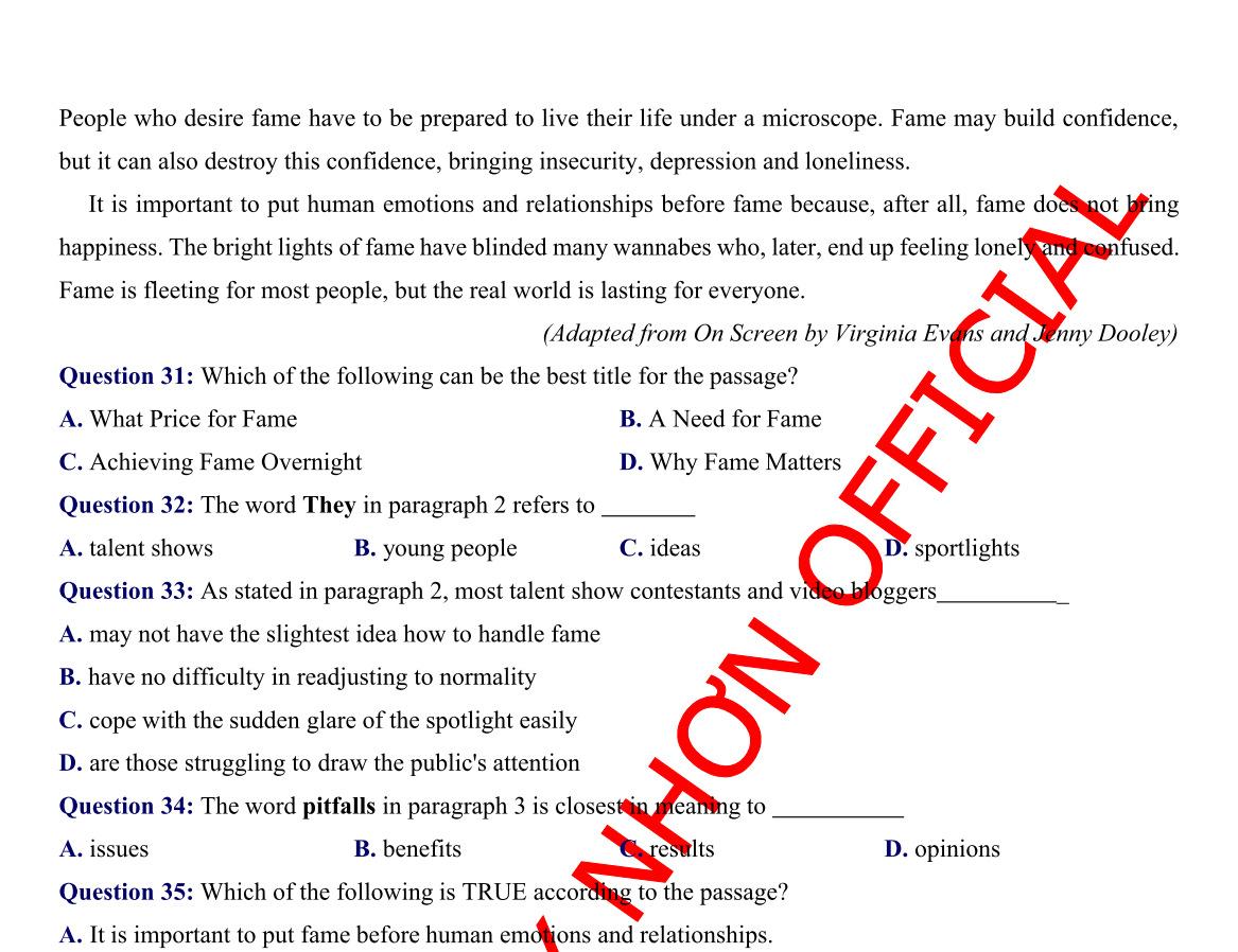 Thông tin: Buying new clothes or the latest electronic device may make us feel on top of the world for a short time, but after a while, the feeling starts to fade. We get used to seeing our (35) possessions and our happiness loses itsshine.