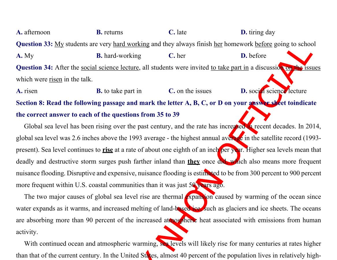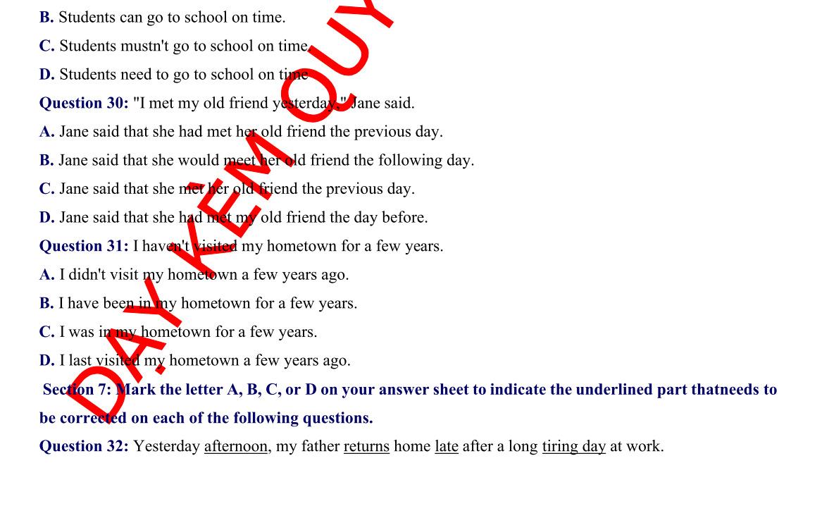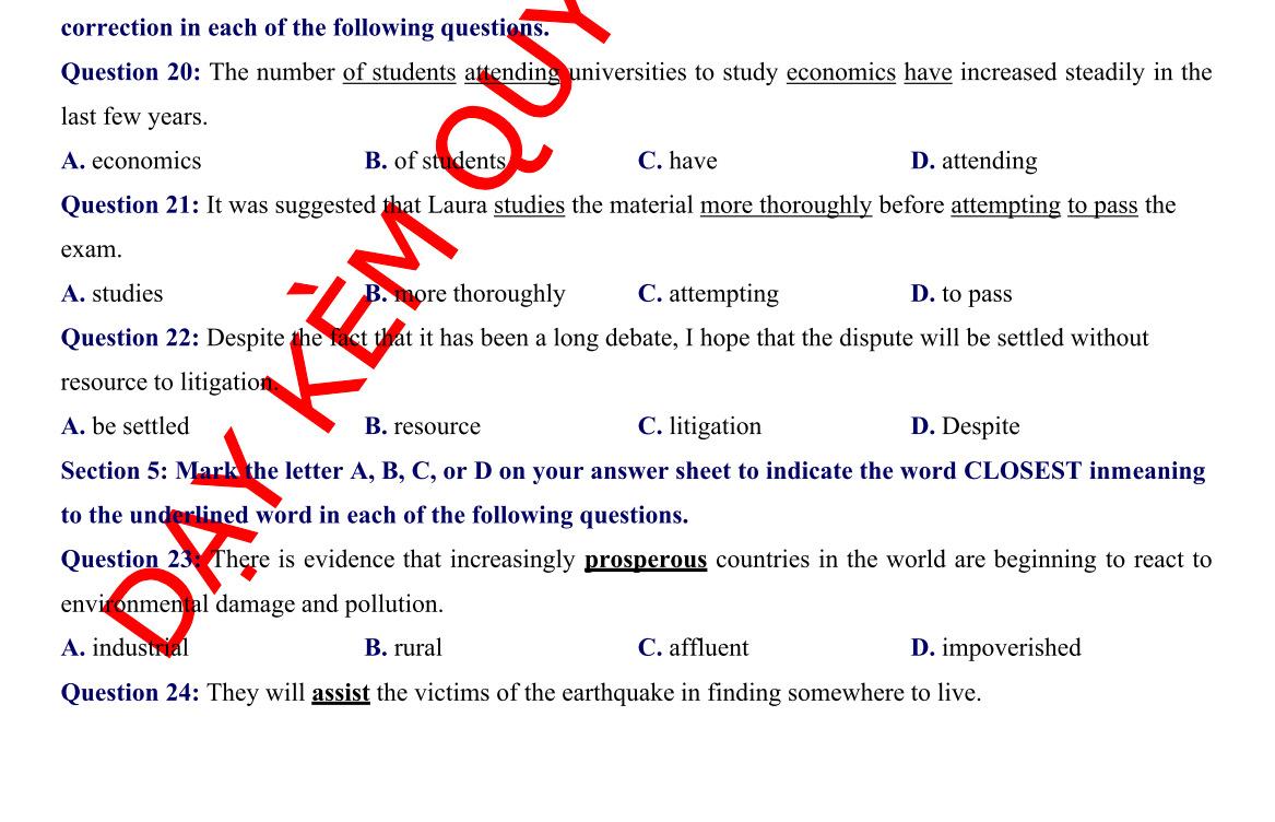 Section2:MarktheletterA,B,CorDtoindicatetheunderlinedpartthatneedscorrectionineachof the followingquestions.