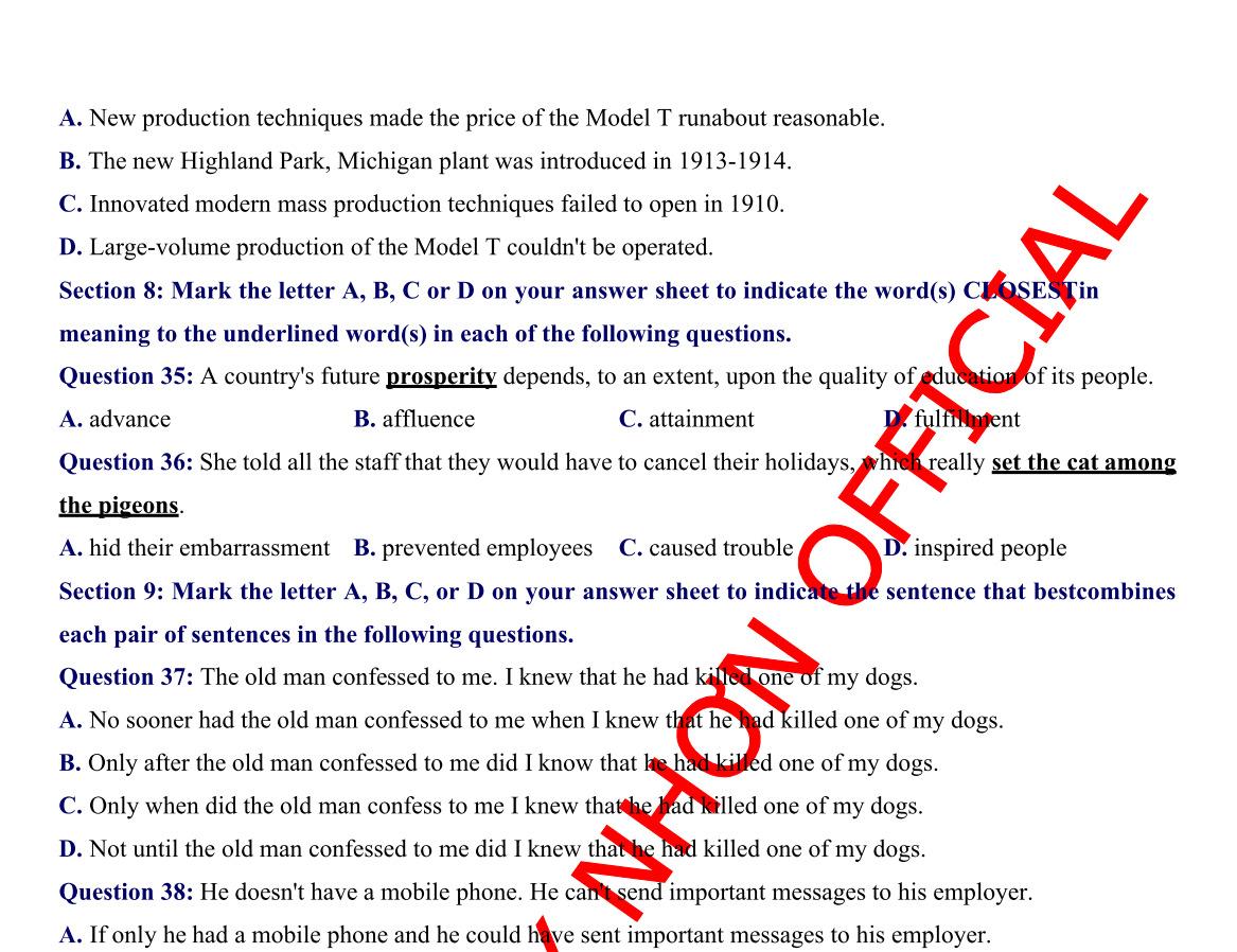 Section1:MarktheletterA,B,CorDtoindicatetheword(s)CLOSESTinmeaningtotheunderlined word(s)ineach of thefollowing questions.
